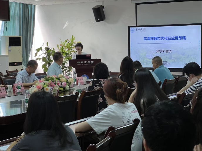 郭慧琛和肖书奇分别为大家带来题为“病毒样颗粒优化及应用策略”和“猪流行性腹泻病毒细胞嗜性变异与致病机制初步研究”的精彩学术报告。郭慧琛从病毒样颗粒的产生、优化及应用方面详细介绍了团队近年来的科研成果。肖书奇则为大家分享了猪流行性腹泻病毒PEDVS基因和E基因在细胞嗜性和致病机制中的作用和机制。教授们的讲座深入浅出、通俗易懂,给学院师生带来了一场学术大餐。